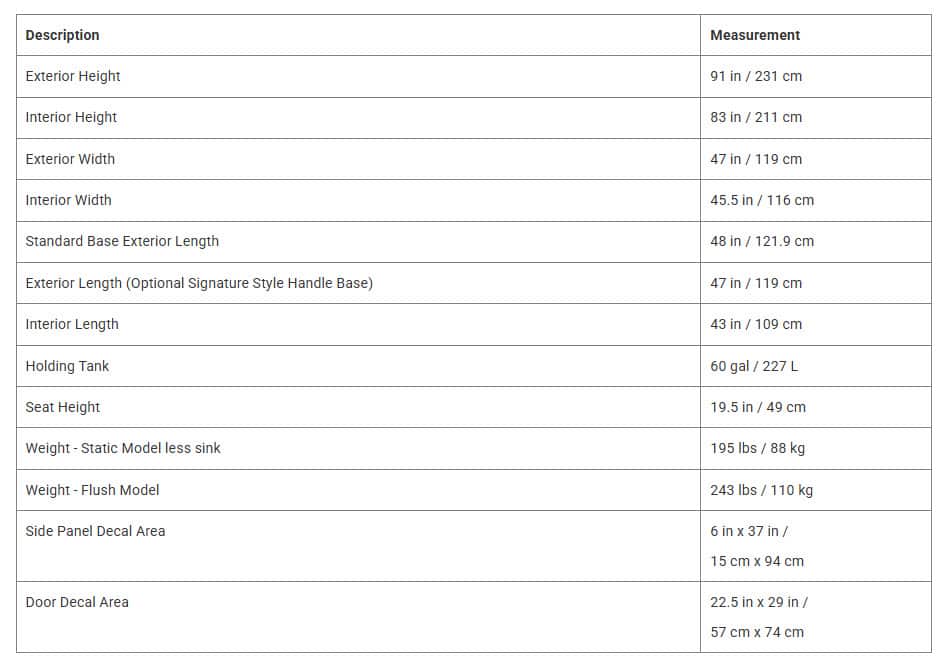 These spacious units are more than 25% larger than standard portable restrooms, providing extra room for guests to move comfortably, even while wearing formal attire. Each unit includes a freshwater flush toilet, a foot pump-operated sink, and a solarpowered interior light for added convenience.
